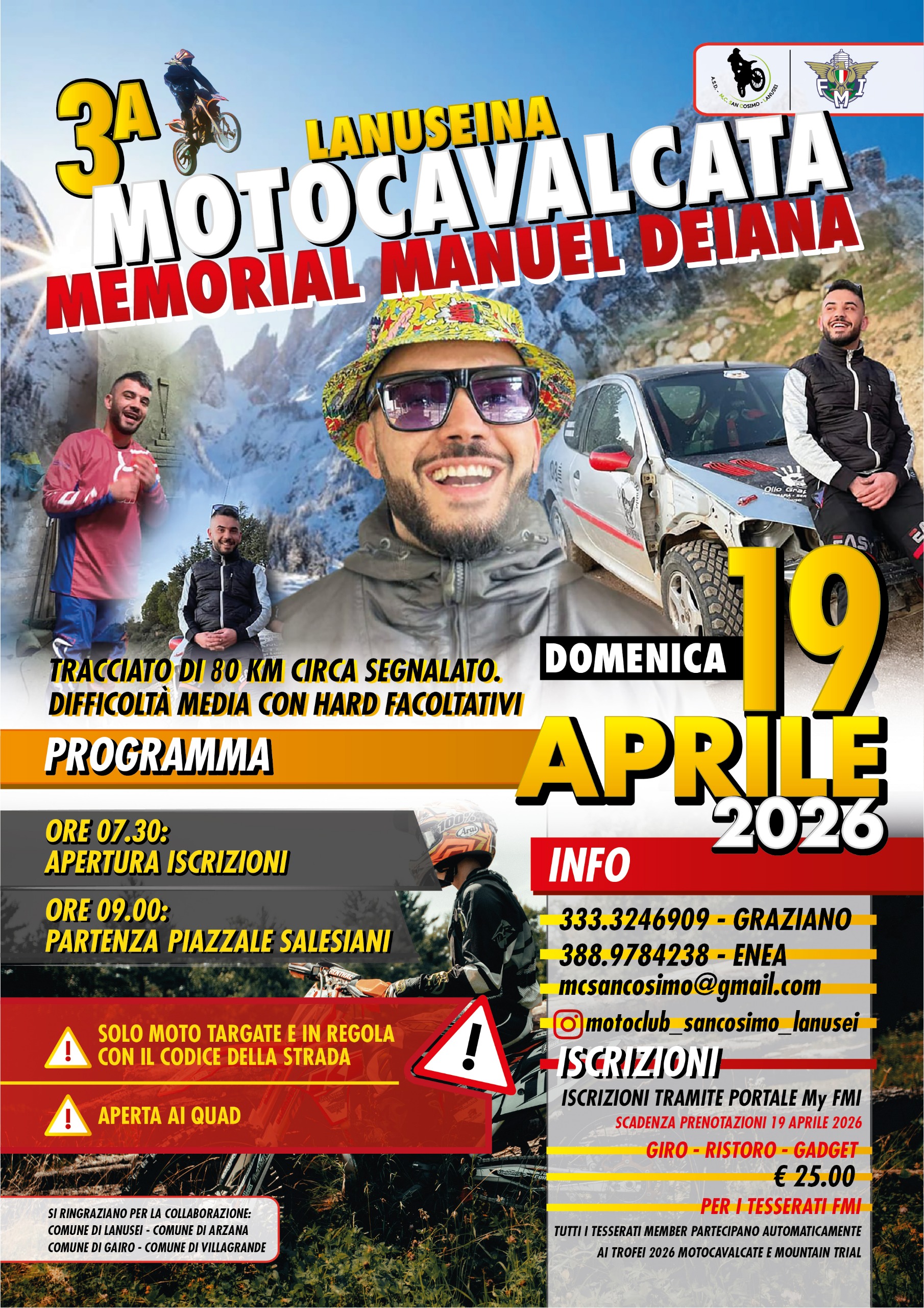 MOTOCAVALCATA MEMORIAL MANUEL DEIANA – 19.04.2026